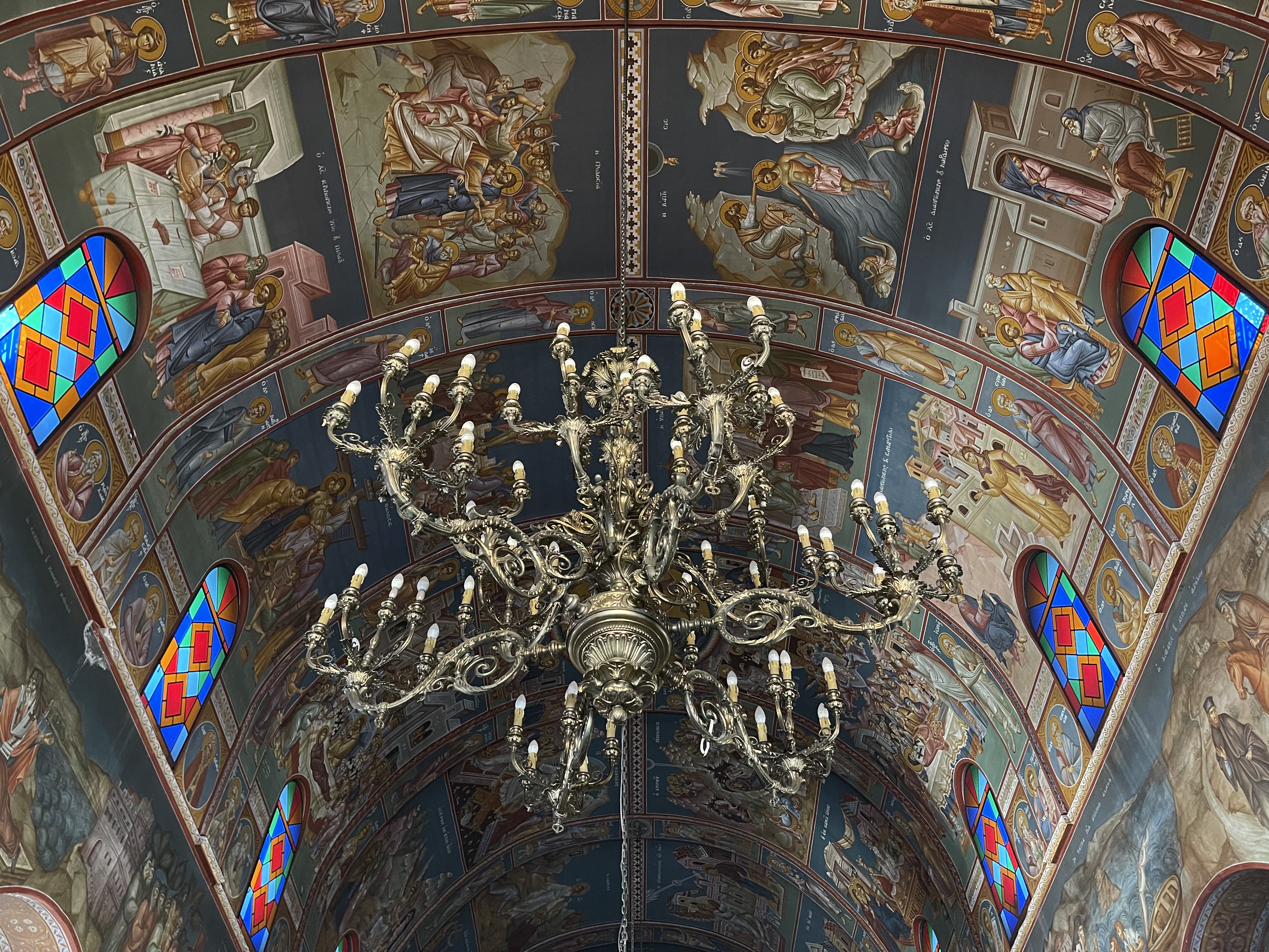 성당 내벽은 다양한 색상으로 바닥에서 천장까지 성화로 뒤덮혀 있다.