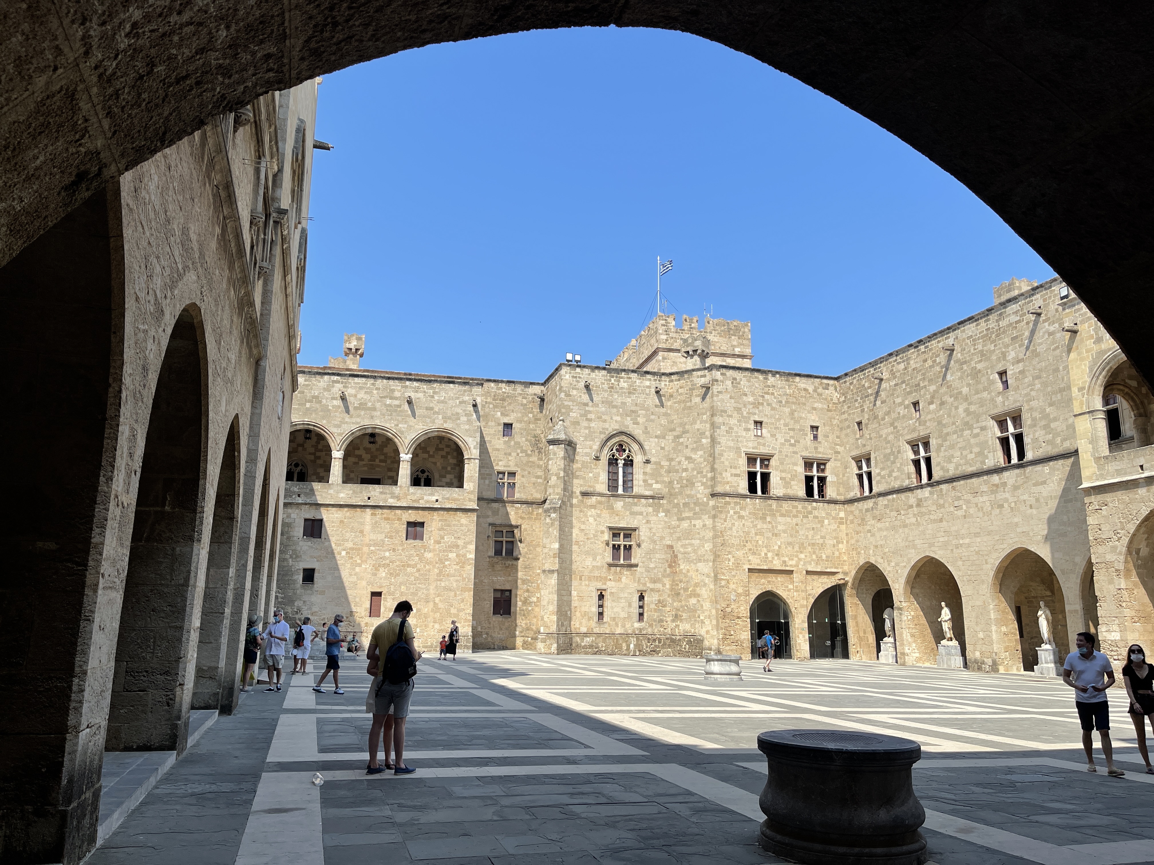 로도스 구시가지의 핵심은 성 요한 기사단장 궁전이다. 원래 이곳은 태양의 신 헬리오스 신전 기초에 세워진 비잔틴 양식의 요새가 있었다. 성 요한 기사단이 이 요새를 개조해 기사단장 궁전으로 그리고 16세기부터 오스만 제국이 요새로 사용했다.