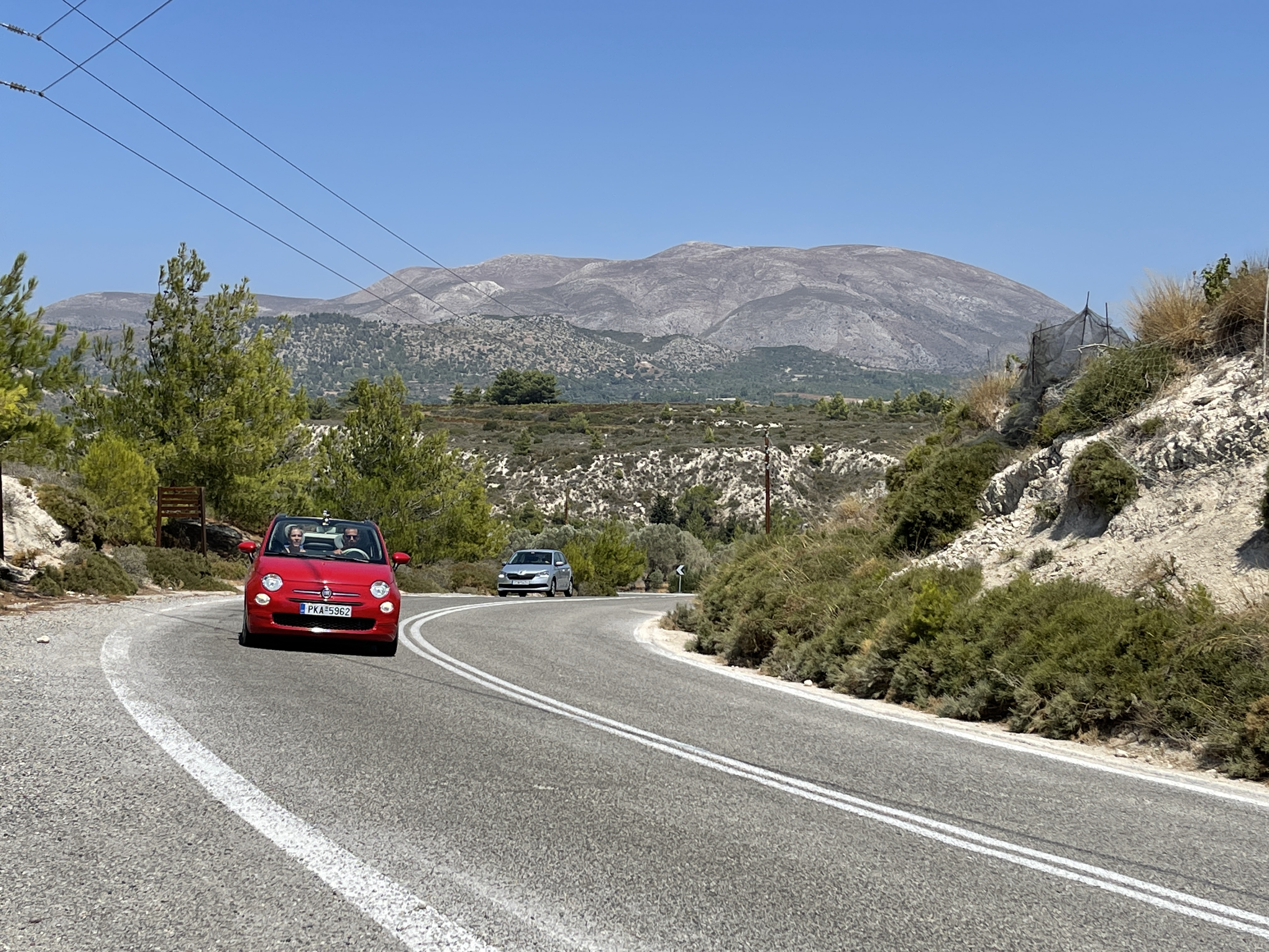 숙소에서 출발해서 1시간 반만에 프라소니시 해변에 도착한다. 마지막 고갯길을 넘어 돌면 광활한 모래사장이 눈앞에 펼쳐진다. 로도스 섬의 남쪽 극점은 이렇게 모래사장 해변이다. 바다 건너 보이는 섬이 프라소니시다. 로도스 중심도시에서 남서쪽으로 90km 떨어져 있다. 프라소니시는 그리스어로 초록섬을 뜻한다.