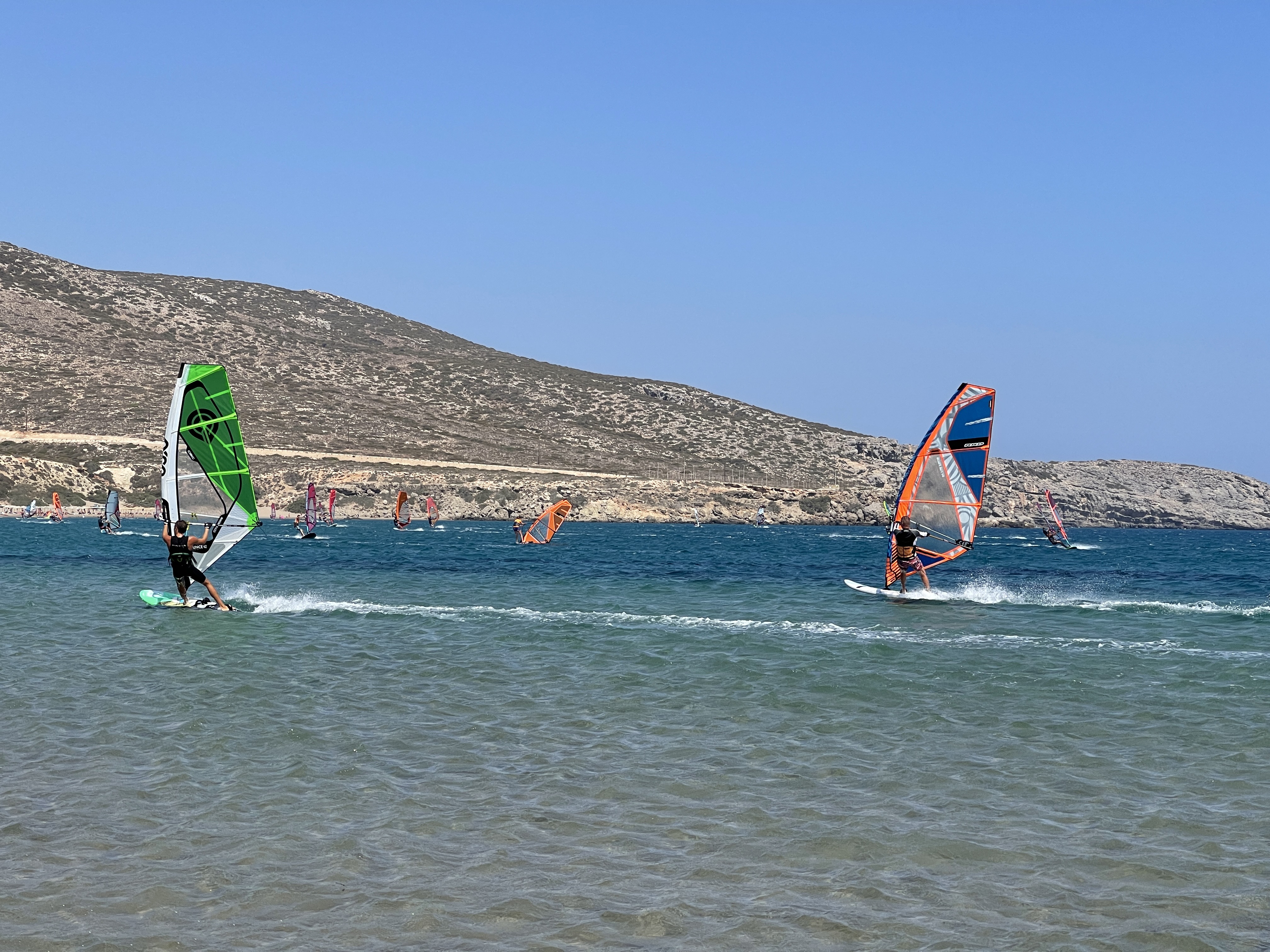 에게해 쪽은 상대적으로 바람과 파도가 강해서 주로 카이트서핑이나 숙련자에게 적합하다.