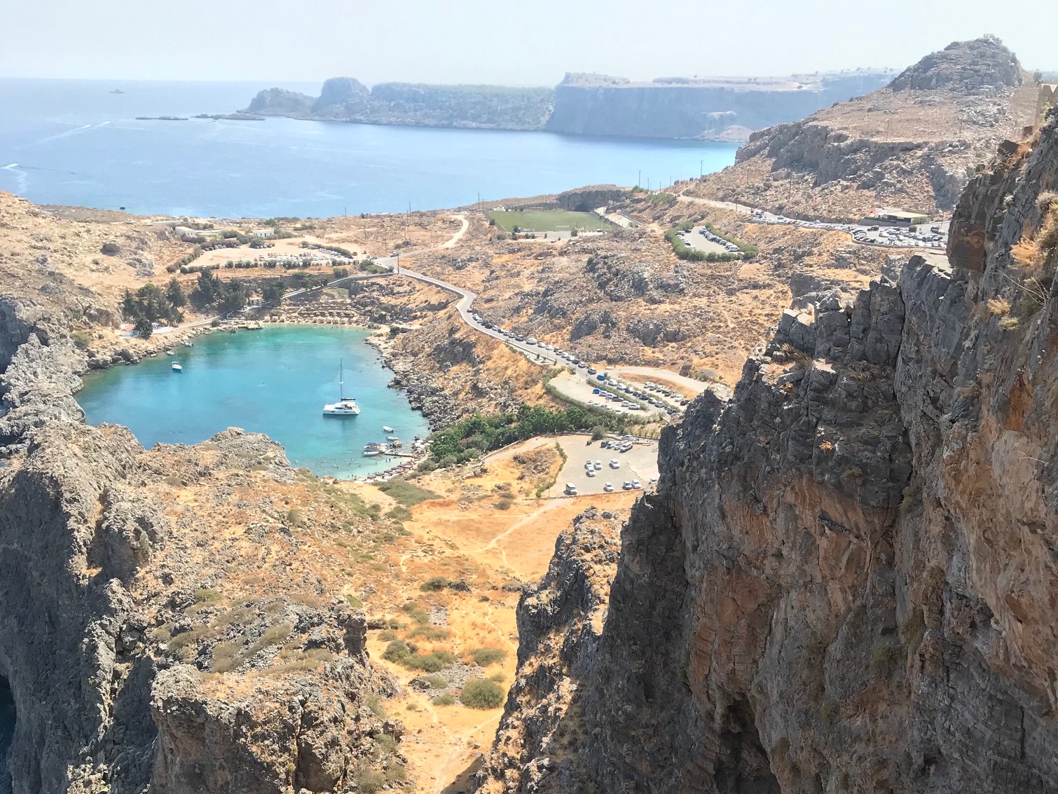 린도스 아크로폴리스에서 내려다보면 성 바울 만은 마치 비취색 하트 모양이다.