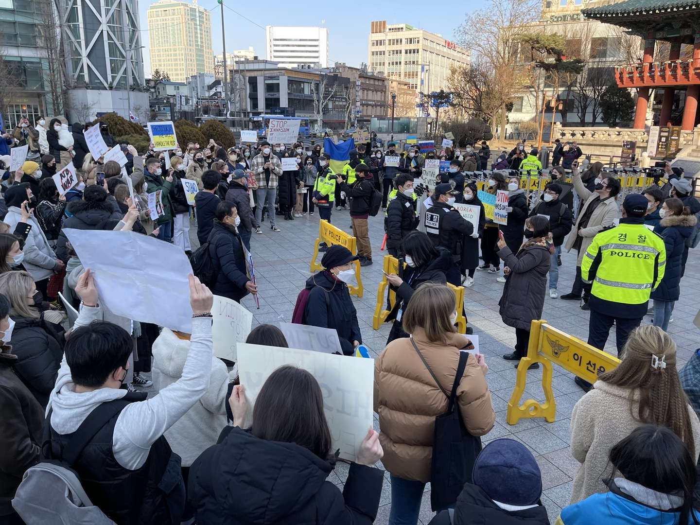 서울에 오자마자 우크라이나 반전 시위에 참가