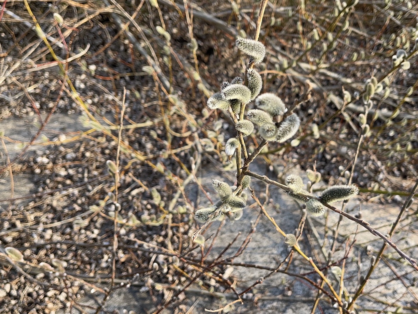 졸졸졸 흐르는 물소리, 초록색 풀 그리고 갯버들(버들강아지)이 산수유꽃 대신에 봄 정취를 느끼게 했다.