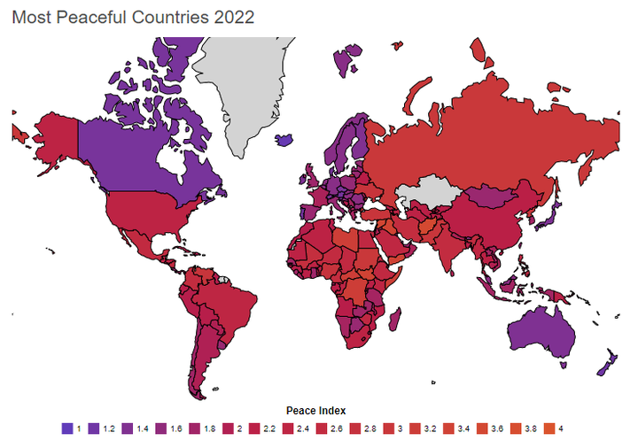 매년 경제평화연구소는 셰계평화지수를 발표한다. 전 세계 163국을 비교 연구해서 세계에서 가장 평화로운 나라와 세계에서 가장 위험한 나라를 분석한다.