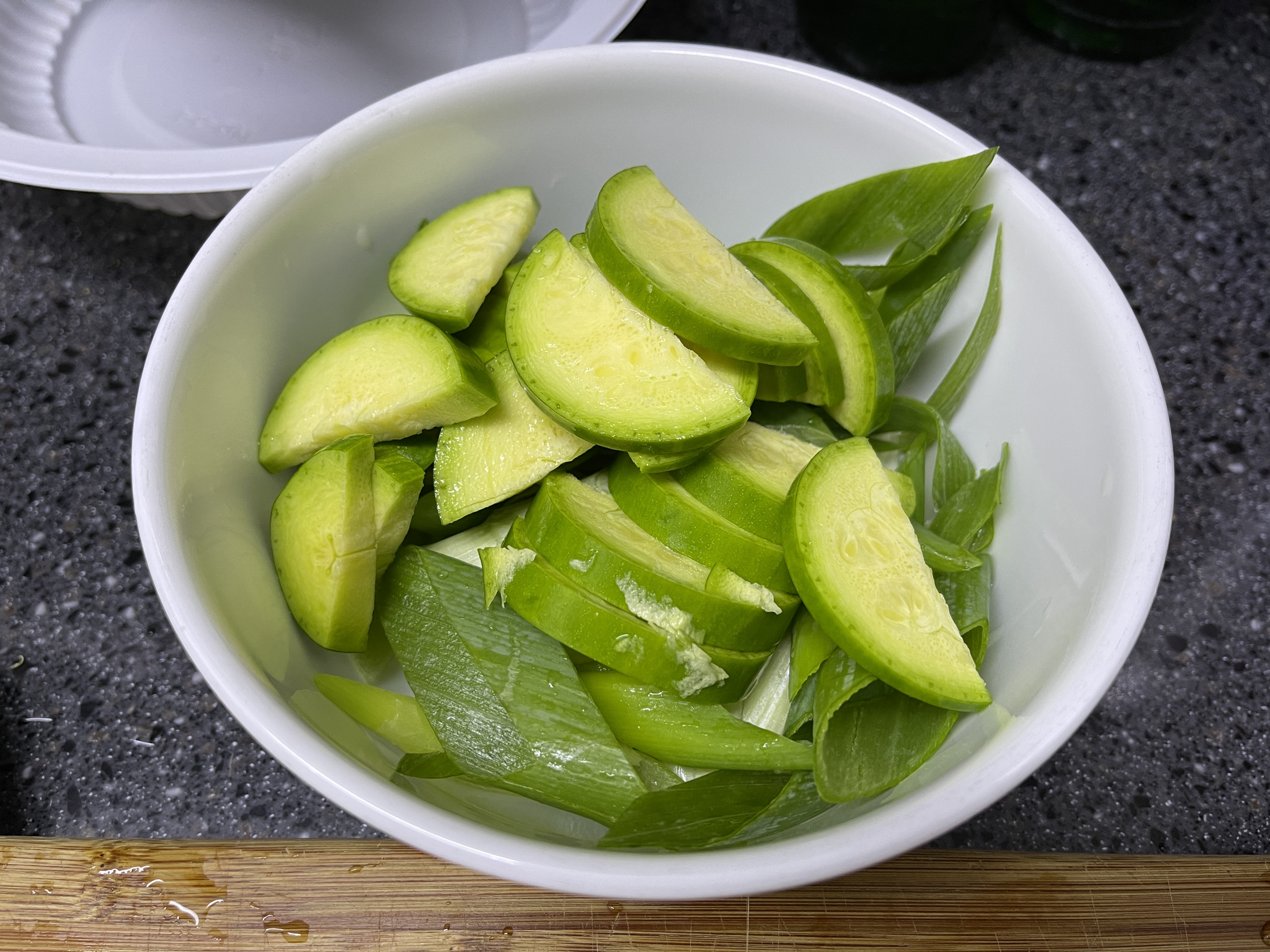 끓고 있는 사이에 애호박, 대파 등을 썬다.