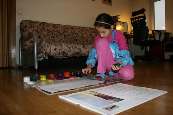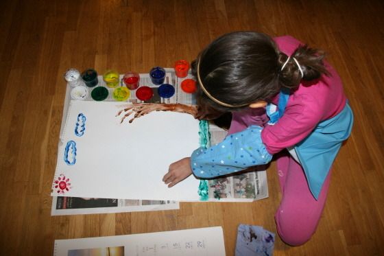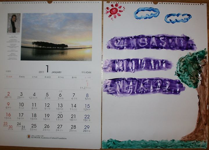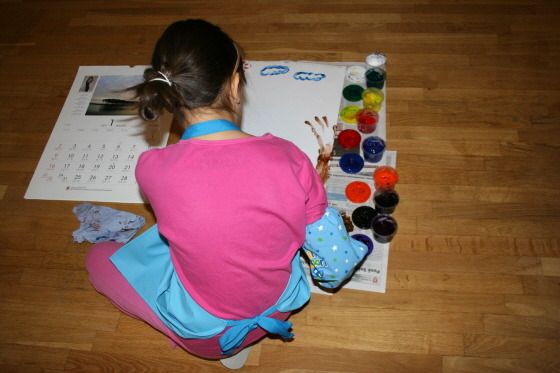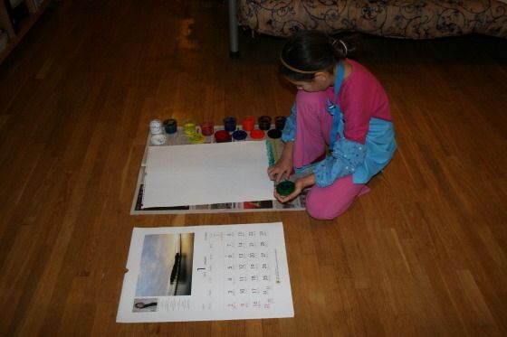 조금 후 딸아이는 물감으로 그림그리기 완벽한 준비를 하고 나타냈다. 달력의 마지막장인 12월을 뜯어냈다. 그리고 한참 동안 그림그리기 놀이를 했다.